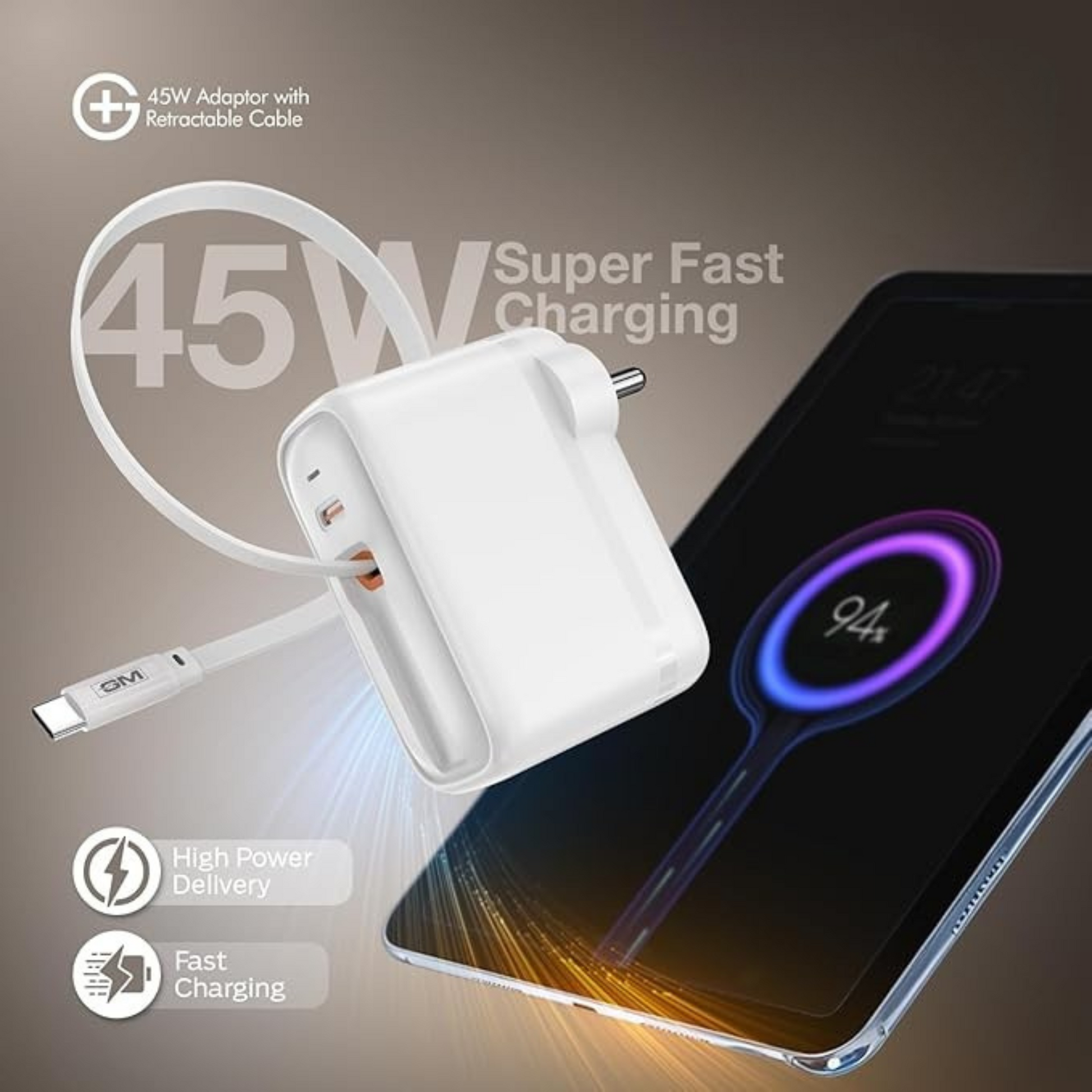 45W Super Fast Output – Charges iPhone 16/15, MacBook, iPad, Android phones.
